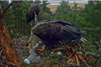Näin hoitaa merikotka poikasiaan juuri nyt - linkki pesäkameraan