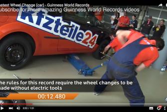 Guinness World Recordsin mukaan nopein renkaanvaihto ilman moottoroituja apuvälineitä sujuu alle minuutissa.